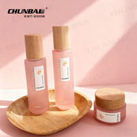 अनुकूलित पुनर्नवीनीकरण गोल गुलाबी फ्रॉस्टेड कॉस्मेटिक क्रीम मक्खन त्वचा देखभाल पैकेजिंग लकड़ी के ढक्कन के साथ ग्लास जार